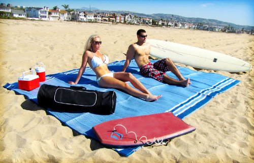 High Quality Foldable Reversible Beach Mat Kit with Bag (Blue Beach Towel Accent)